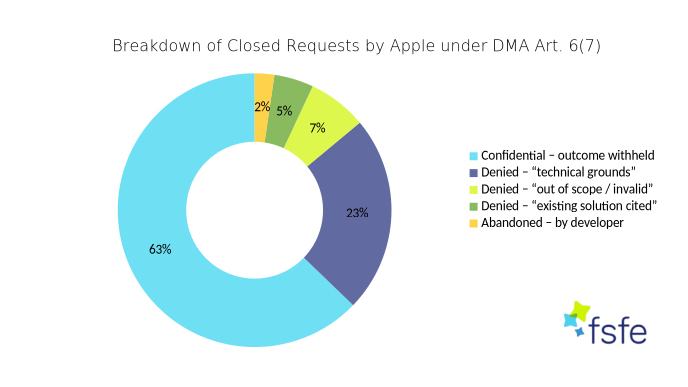 A new FSFE report exposes how 56 interoperability requests under the Digital Markets Act have produced no concrete solutions by Apple, and how their declines contradict their own official documentation, leaving third-party developers locked out of iOS and iPadOS, despite European Commission’s latest specification decision.