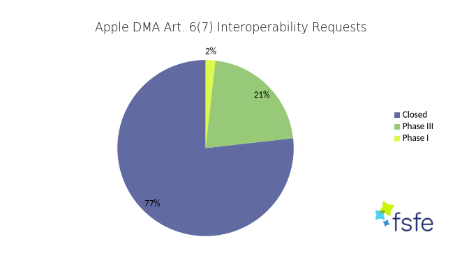 CC-BY-SA 4.0. by Rahak for FSFE.The Free Software Foundation Europe (FSFE)’s report “The challenges of regulating interoperability. Analysing Apple’s request-based approach under the Digital Markets Act” sheds lights on how Apple has been implementing the interoperability obligations under the Digital Markets Act (DMA). Under the European Commission (EC)'s latest rules, third-party developers can formally request access to Apple's platform. This report looks at how Apple has handled those requests in practice. The evidence of the report is based on public data from Apple’s public tracker, implemented as a requirement of the regulatory framework.