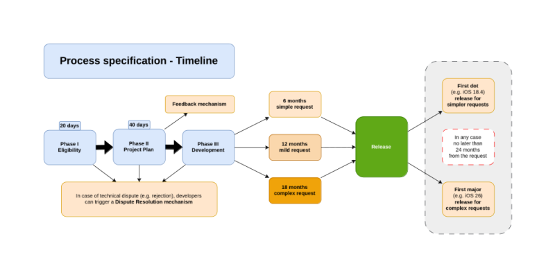 If Apple rejects the request, developers can seek internal review and, in some cases, conciliation. Even when a request is accepted, Apple can still take up to 24 months to implement the result, depending on its own assessment of technical complexity. That means the process can stretch across months or years before developers see any practical benefit, even though the underlying right to interoperability is already supposed to exist.