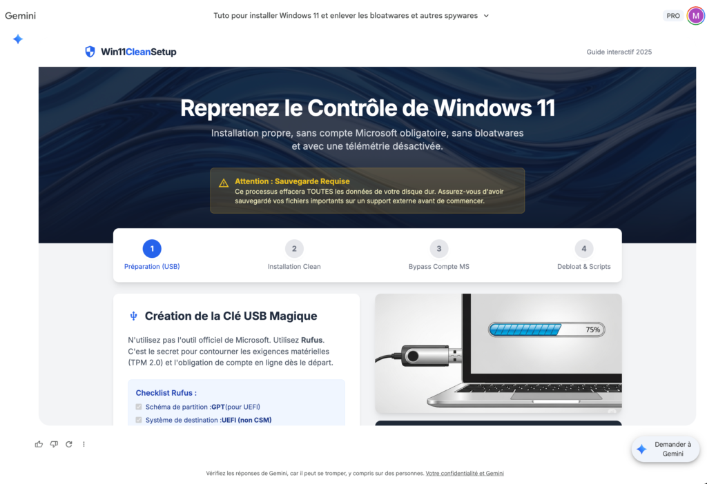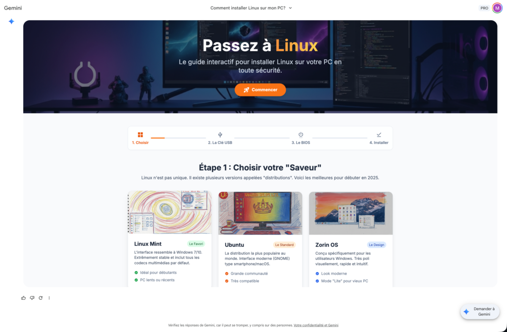 Vous voulez un tutoriel pour installer Linux ? Vous n'aurez pas une liste d'étapes, mais un guide interactif avec des boutons, des cases à cocher pour suivre votre progression, peut-être même une galerie d'images générées pour illustrer chaque étape.