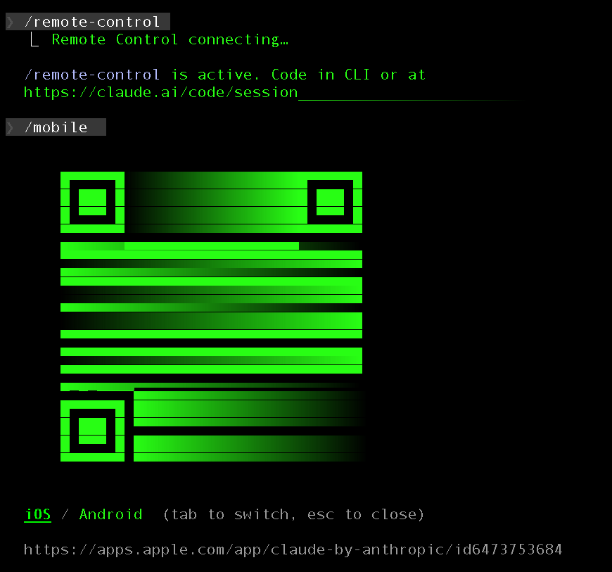 Sinon, dans Claude Code avec /mobile vous pouvez aussi afficher directement le QR code pour télécharger l'app Claude sur iOS ou Android.