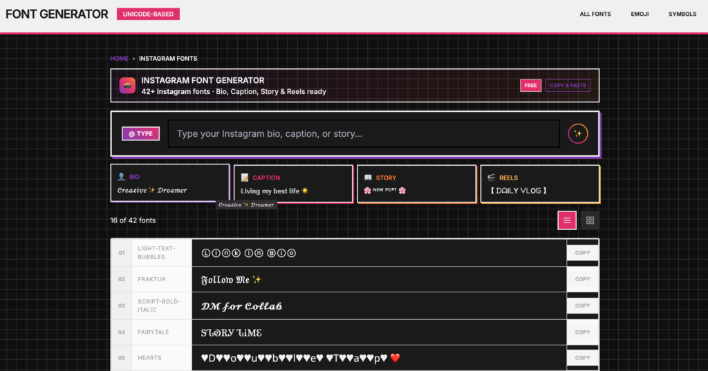 Font Generator - 170 polices stylées pour votre bio Instagram