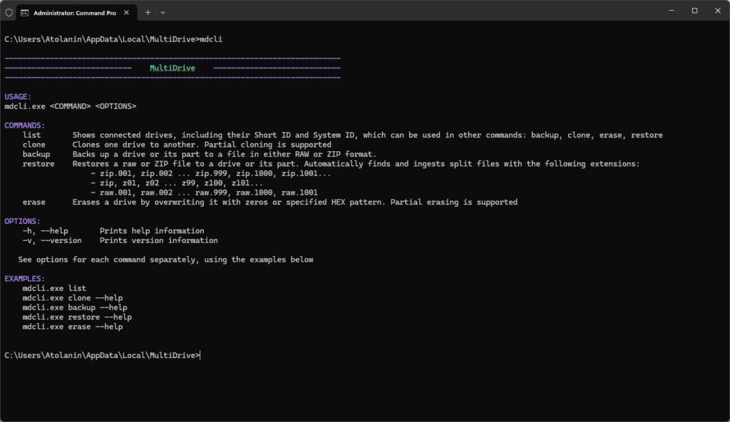 (HDD vers SSD, tout ça), y compris le disque boot (pratique pour migrer votre Windows vers un SSD), la sauvegarde complète en ZIP ou RAW, et l'effacement sécurisé avec patterns HEX ainsi que de la vérification d'intégrité en MD5, SHA256, SHA512... bref, y'a ce qu'il faut. Mais le gros plus pour les admins, c'est le mode CLI via mdcli. Comme ça, hop, vous scriptez vos backups et ça tourne tout seul !