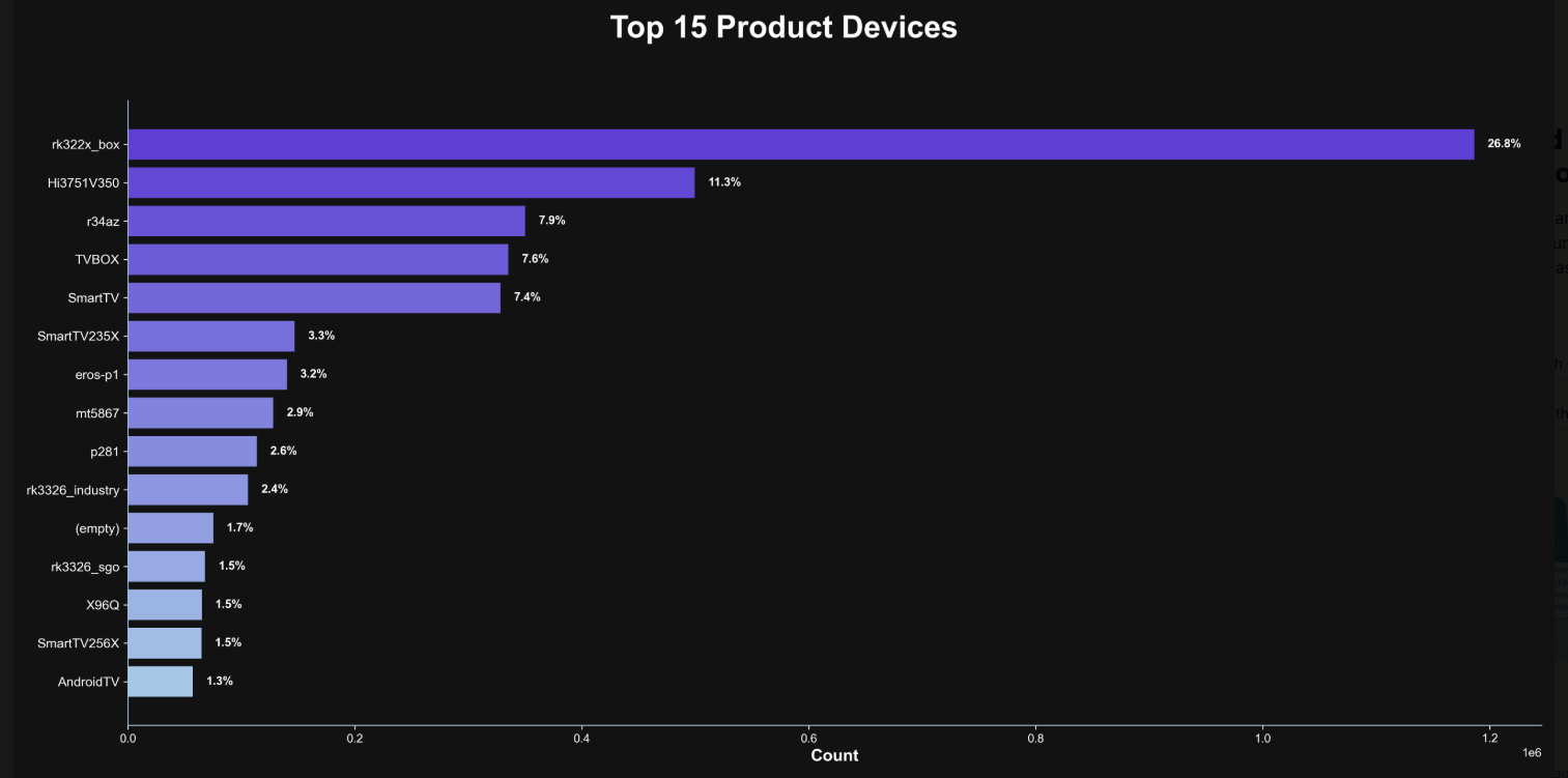 The security company Synthient currently sees more than 2 million infected Kimwolf devices distributed globally but with concentrations in Vietnam, Brazil, India, Saudi Arabia, Russia and the United States. Synthient found that two-thirds of the Kimwolf infections are Android TV boxes with no security or authentication built in.