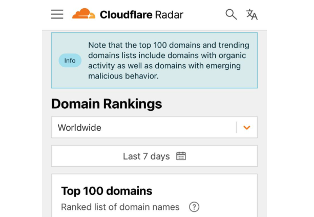 Greenland said Cloudflare planned for its Domain Rankings to list the most popular domains as used by human users, and it was never meant to be a raw calculation of query frequency or traffic volume going through their 1.1.1.1 DNS resolver.